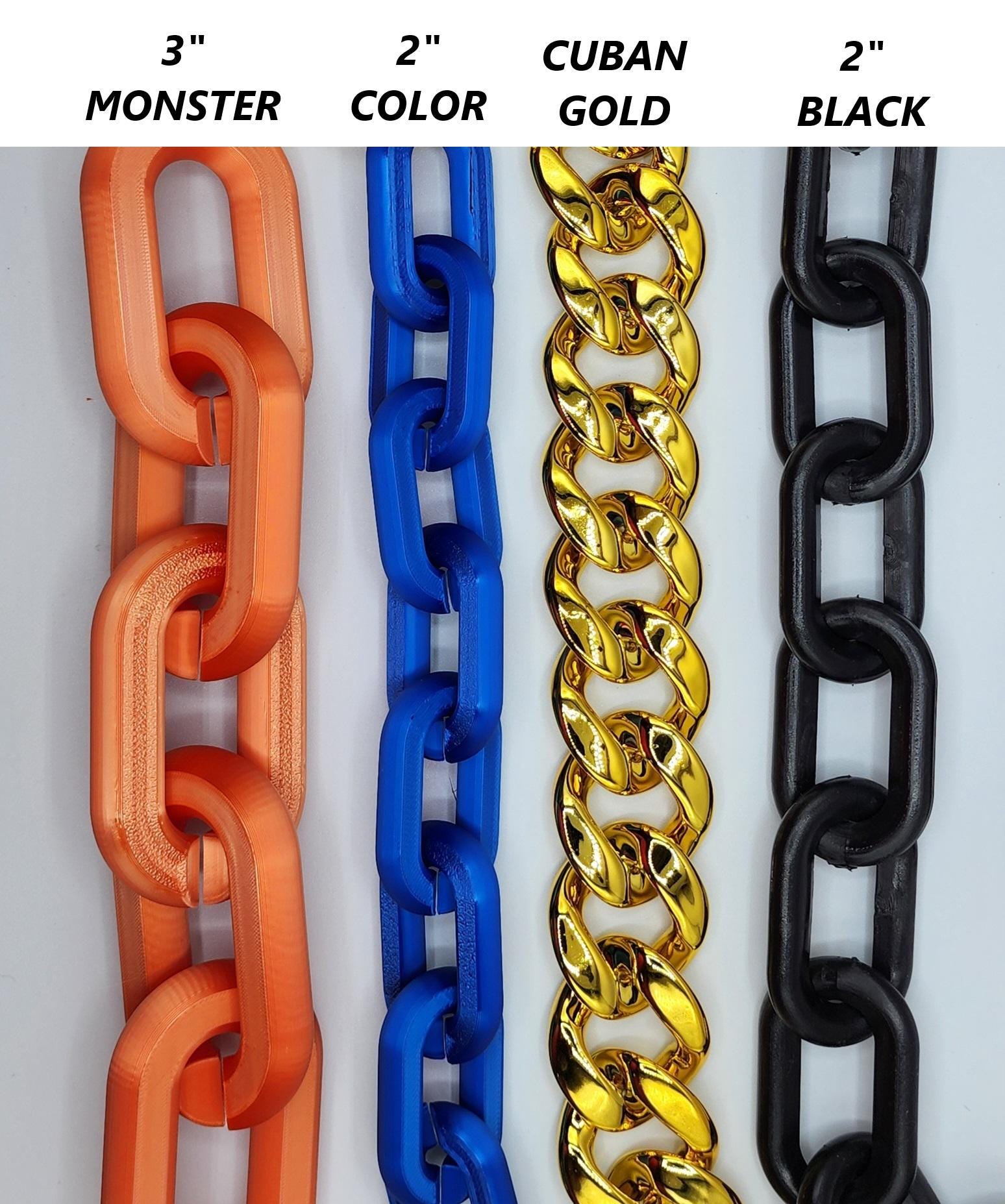 Show your team pride with a giant logo Fan Chain! You've seen them everywhere at sporting events and now you can have your own custom made Fan Chain. Just send a picture and I'll do the rest. It can be just about anything! The standard chain is black and 36" long with 2" links. Also available are color 2" links and color 3" links. Logos will about 8"-10" at the widest or longest point. Thickness is 1/8". Material is 3D printed plastic.